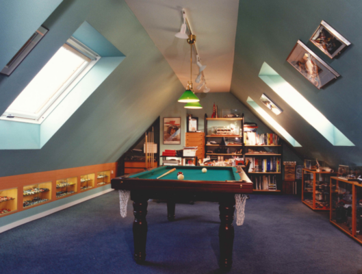 Il n’y a pas que les enfants qui ont droit à une salle de jeux. En effet, vous pouvez également aménager une salle de jeux « pour adulte » dans vos combles. Par exemple, une salle de billard, un babyfoot….