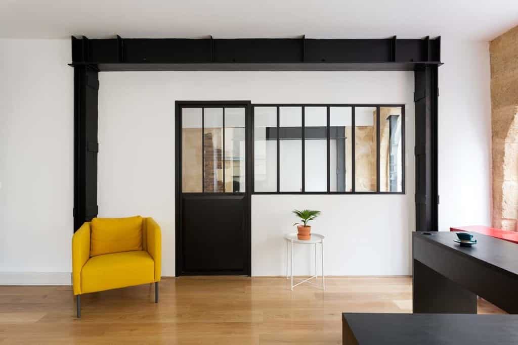 Tout d’abord, nous avons posé une cloison partielle permettant d’intégrer une verrière. Et, nous avons également installé des portes vitrées pour pouvoir circuler tout en laissant passer la lumière.